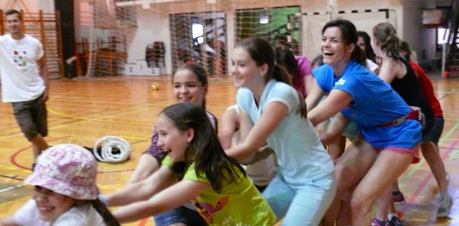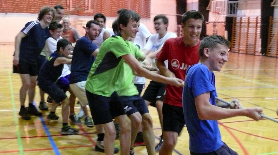 A nap végén ismét közös program várta a kipirult sportolókat: a csarnokban kötélhúzó versenyen a fiúk a lányok ellen mérhették össze erejüket és ügyességüket.